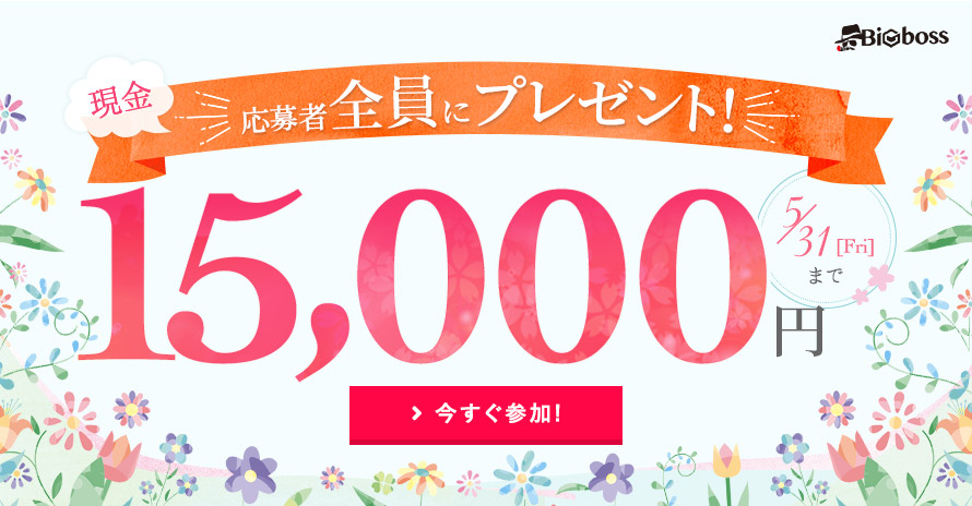 キャンペーン期間中に、当サイトを利用して海外FXブローカー【BIGBOSS】の新規口座開設をし、10万円以上のデポジットおよび合計1ロット以上のお取引をされた【お客様全員】に現金15,000円をプレゼントいたします。